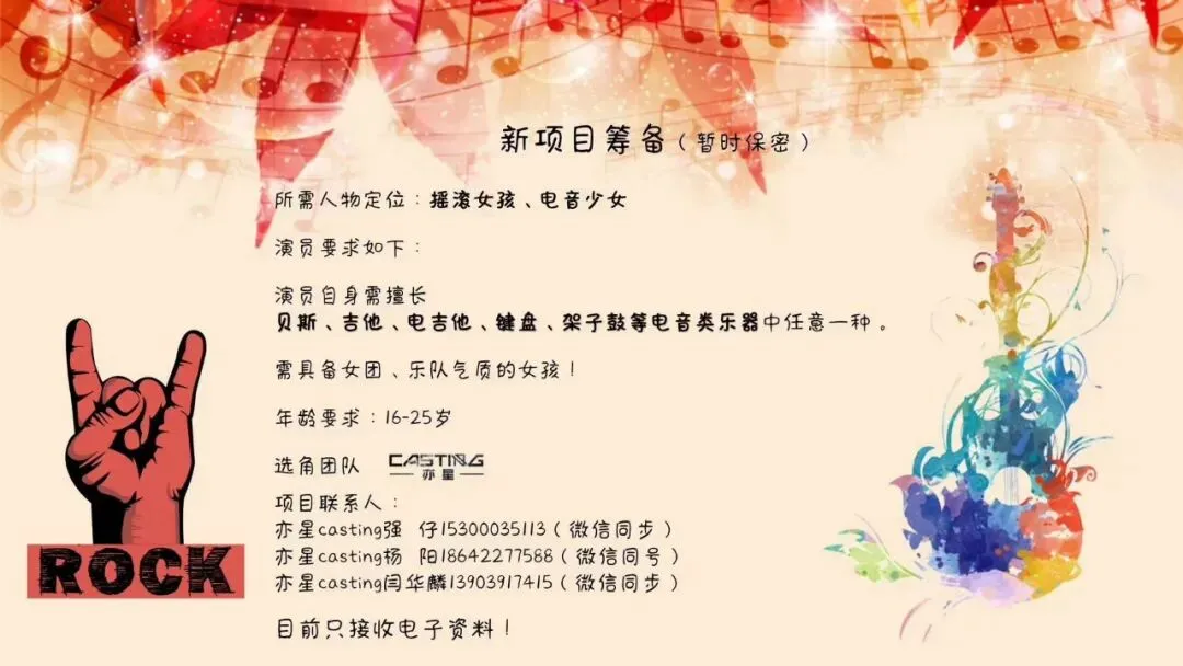 需具备女团、乐队气质的女孩!年龄要求:16-25岁
