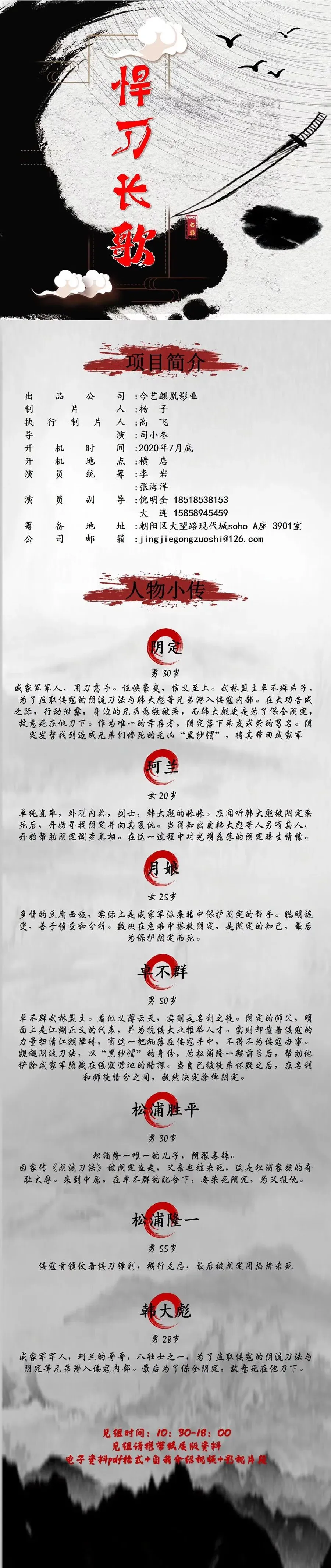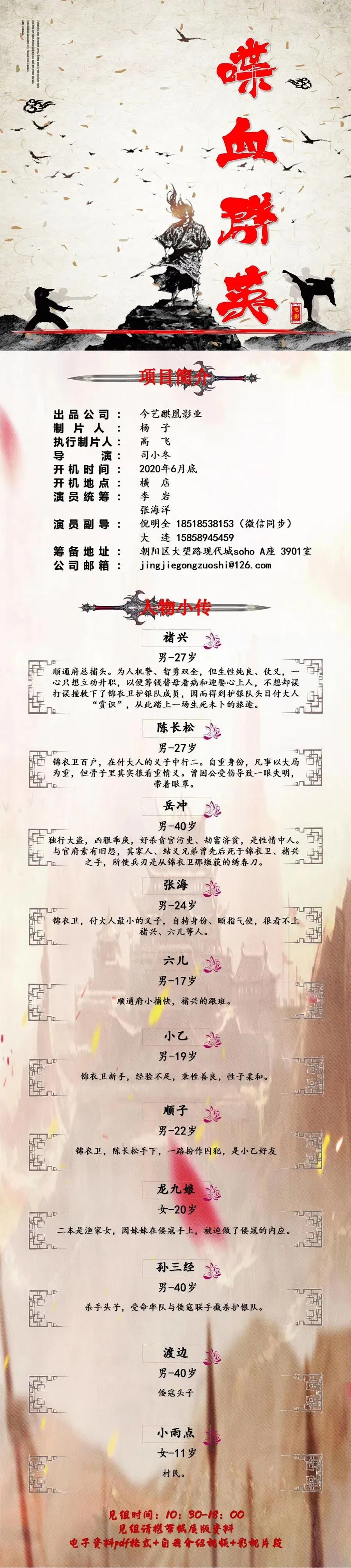 众多角色未定,欢迎各位演员及经纪人朋友投递资料,感谢大家,期待合作。