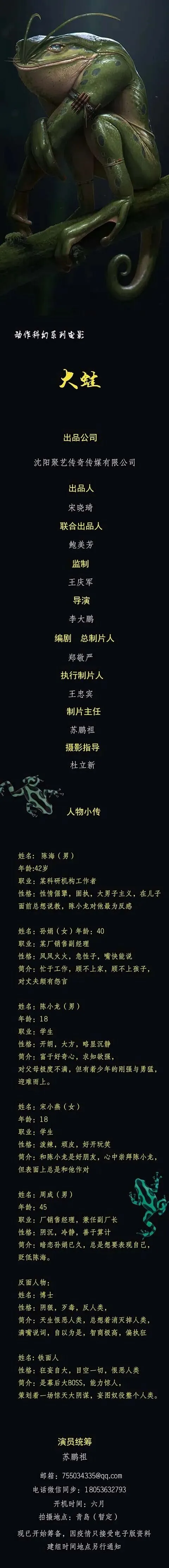 动作科幻系列电影《大蛙》【更新开机时间】