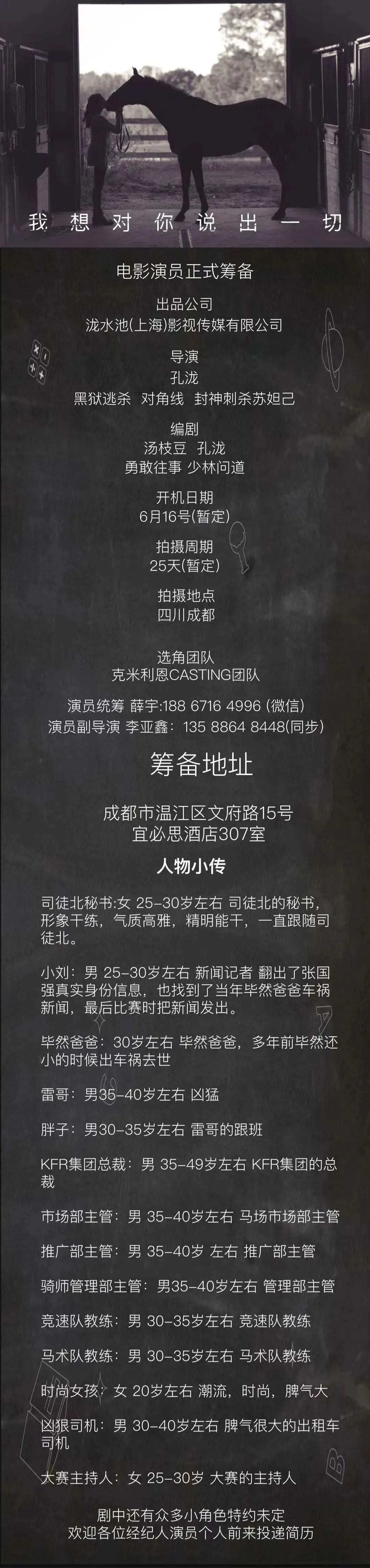 演员统筹:薛宇 18867164996(微信同步)