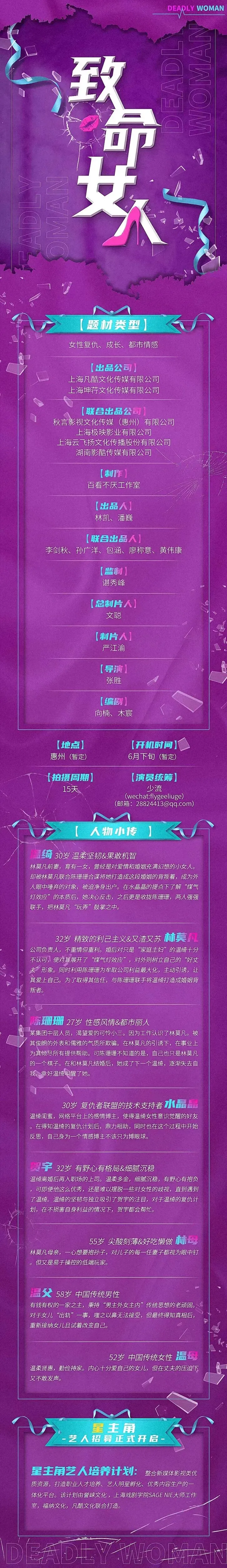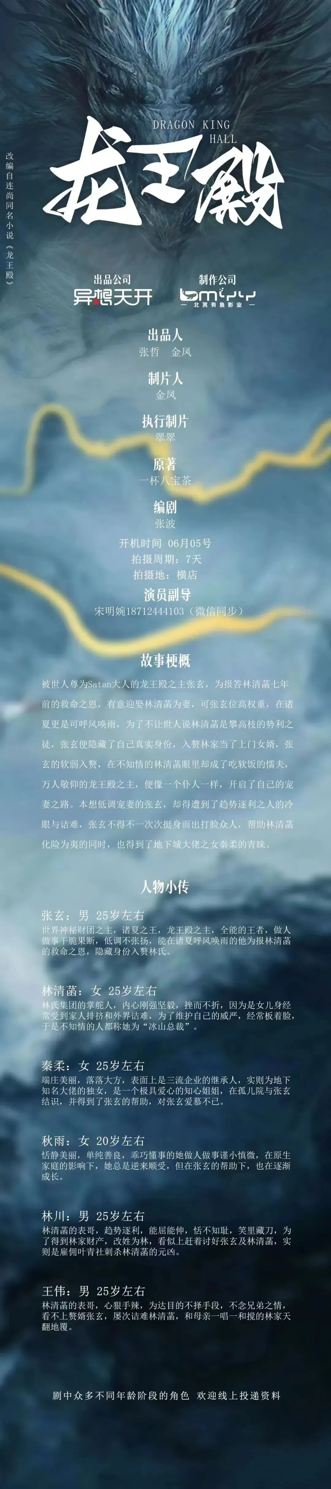 片中大量角色未定,欢迎各大经纪公司及演员朋友投递资料,期待与您合作
