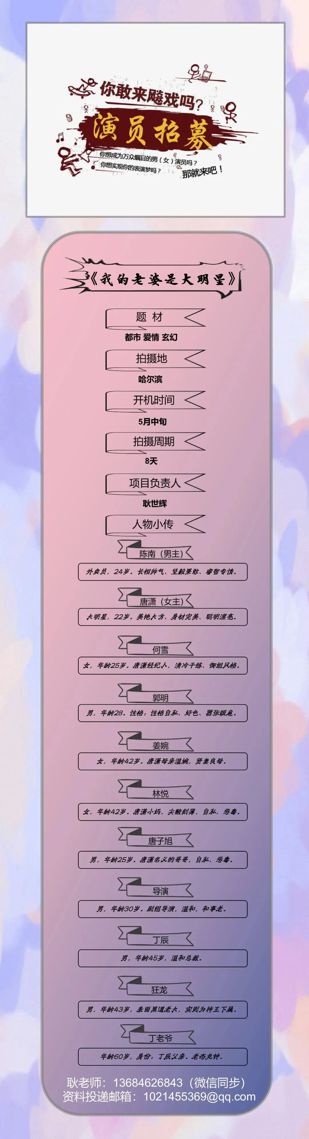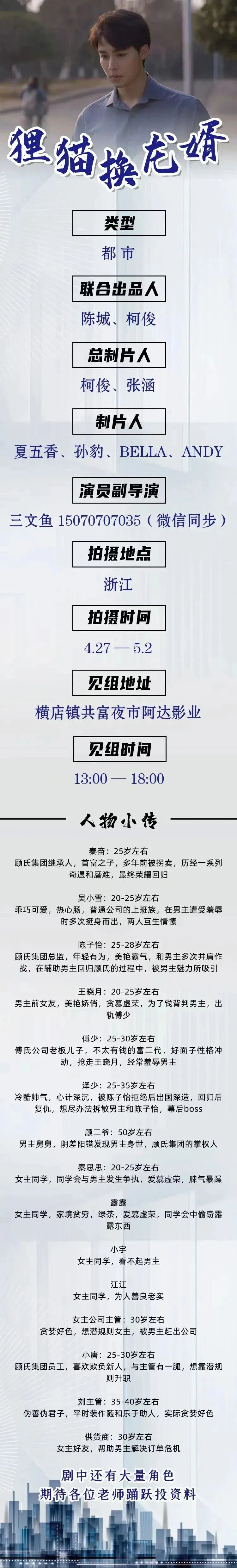 选角导演:周周 18500394177(同微信)