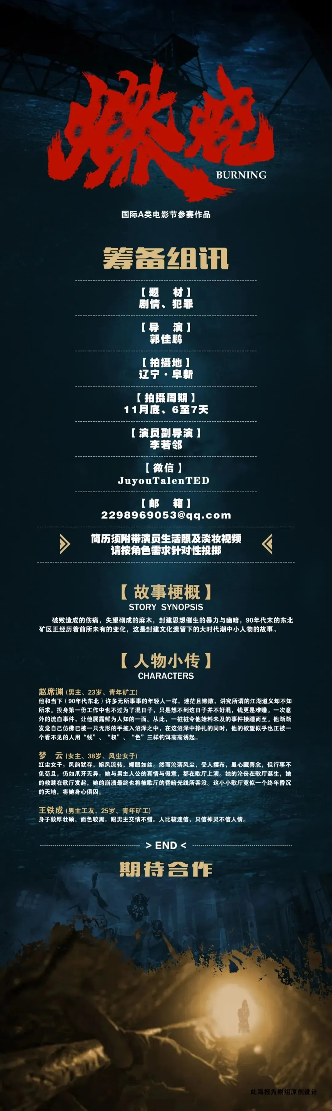 本栏目发布组讯由小编采集与业界共享,组讯如有变化请以实际情况为准。如果遇到剧组收费情况,请谨慎对待并私信官微@戏客Seeker,我们会公示问题组讯并及时处理。谢谢。