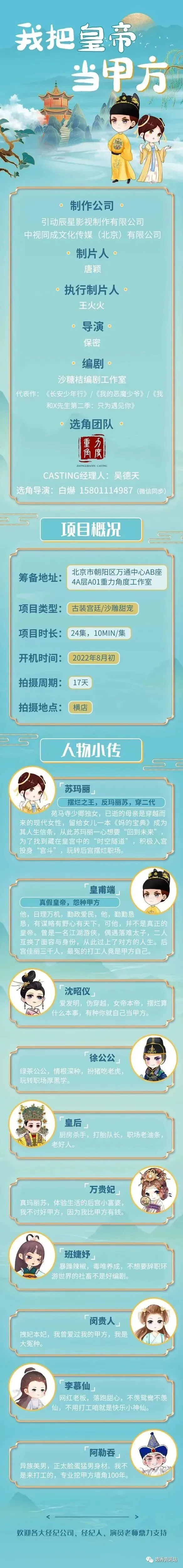 古装甜宠短剧《我把皇帝当甲方》招募角色演员!
