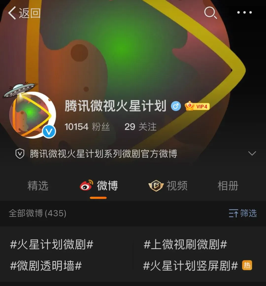 值得夸夸的就是,微视小剧场开启火星计划后也在微博上建立了相应的宣传账号,在新剧杀青或者开播时,都会有一定的物料放送。