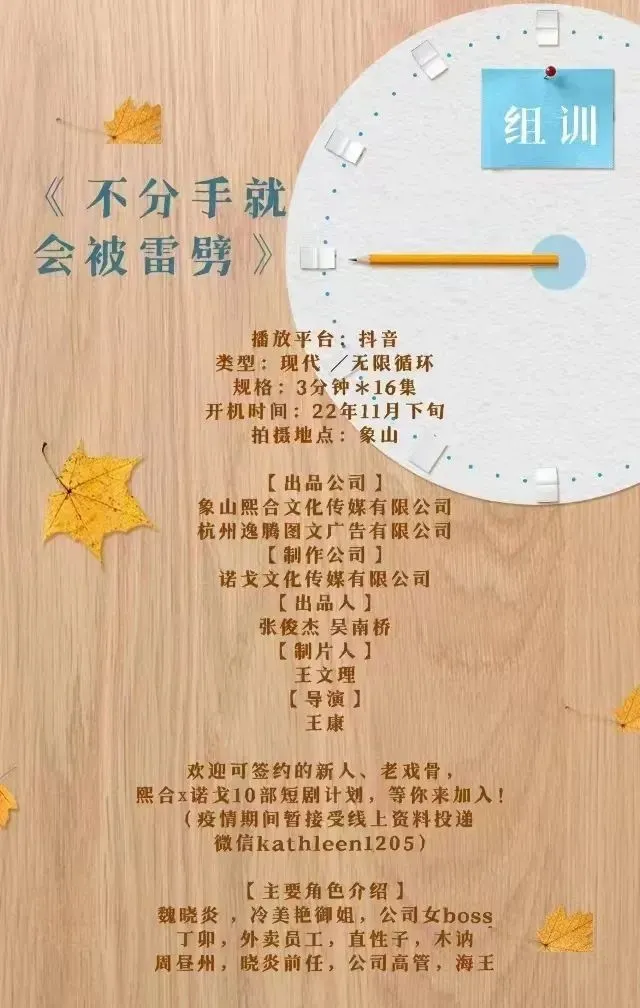 欢迎可签约的新人、老戏骨,熙合x诺戈10部短剧计划,等你来加入!疫情期间暂接受线上,资料投递微信。