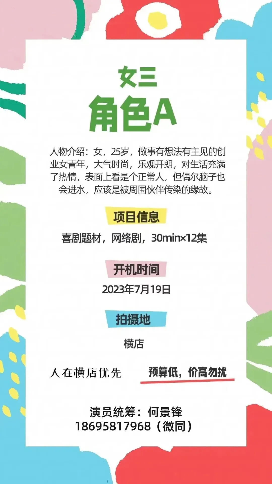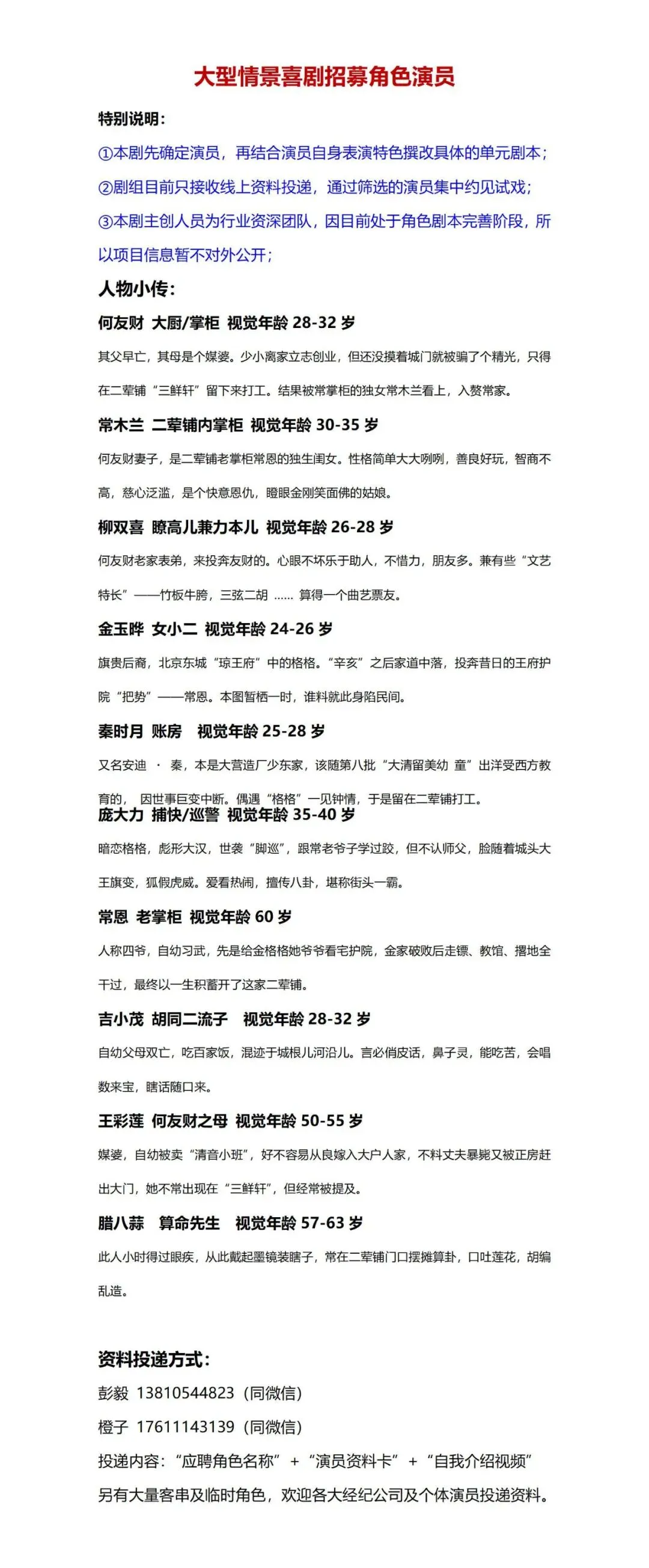 选角负责人:橙子 17611143139(微信同步)
