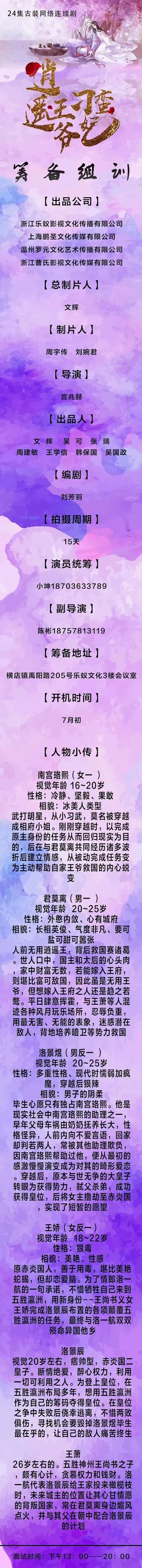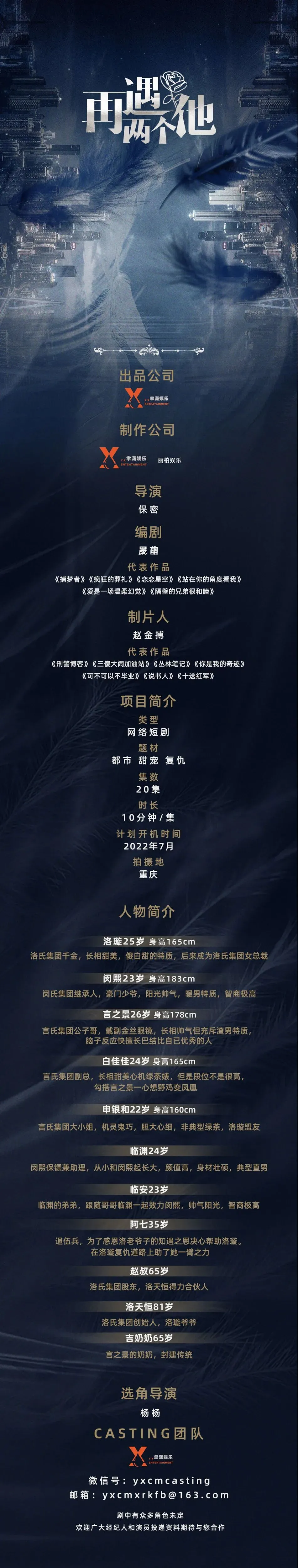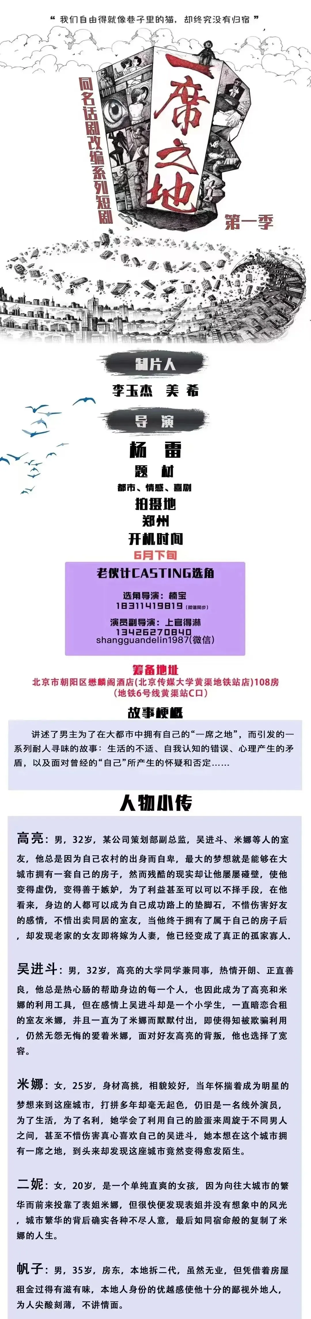 本栏目发布组讯由小编采集与业界共享,组讯如有变化请以实际情况为准。如果遇到剧组收费情况,请谨慎对待并私信官微@戏客Seeker,我们会公示问题组讯并及时处理。谢谢。