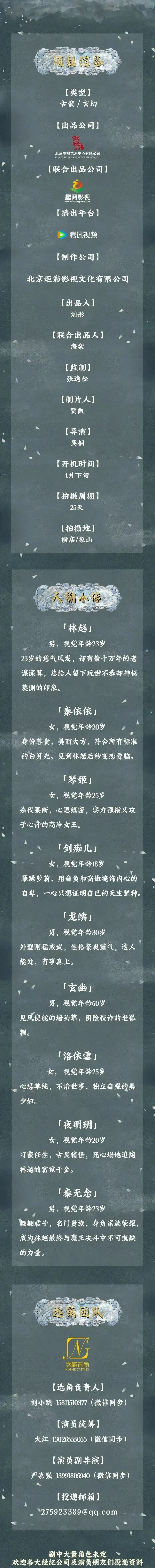 主创阵容:出品人:刘彤、联合出品人:海棠、监制:张逸松、制片人:贾凯、导演:吴桐