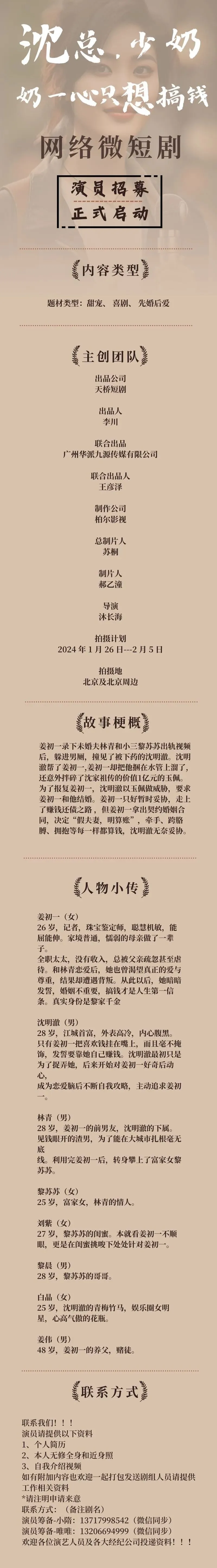 甜宠微短剧《沈总,少奶奶一心只想搞钱》