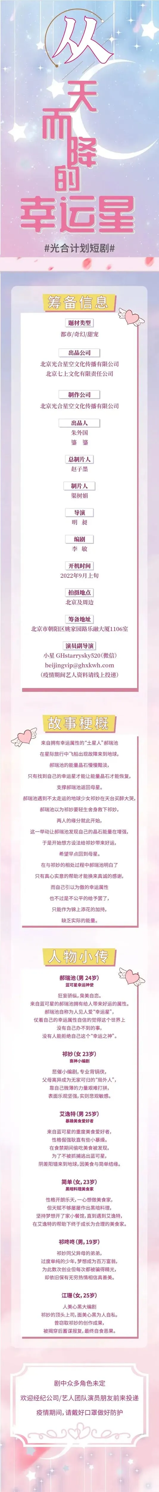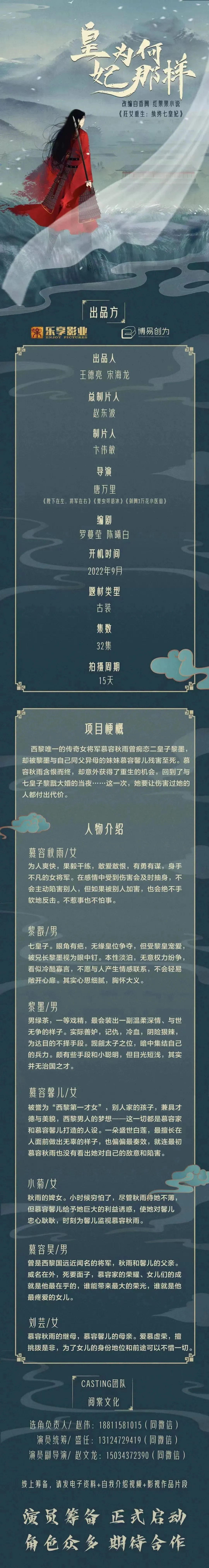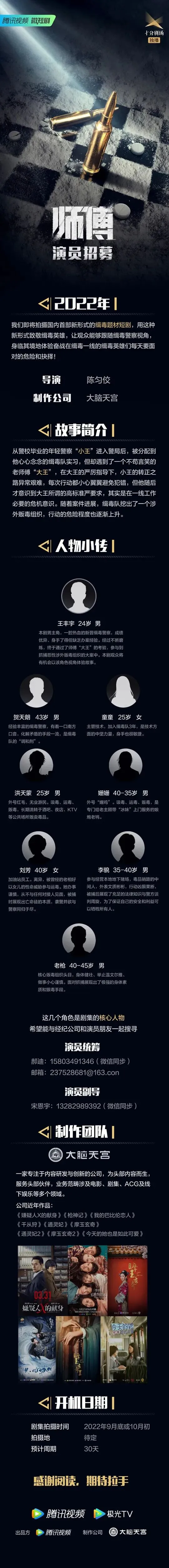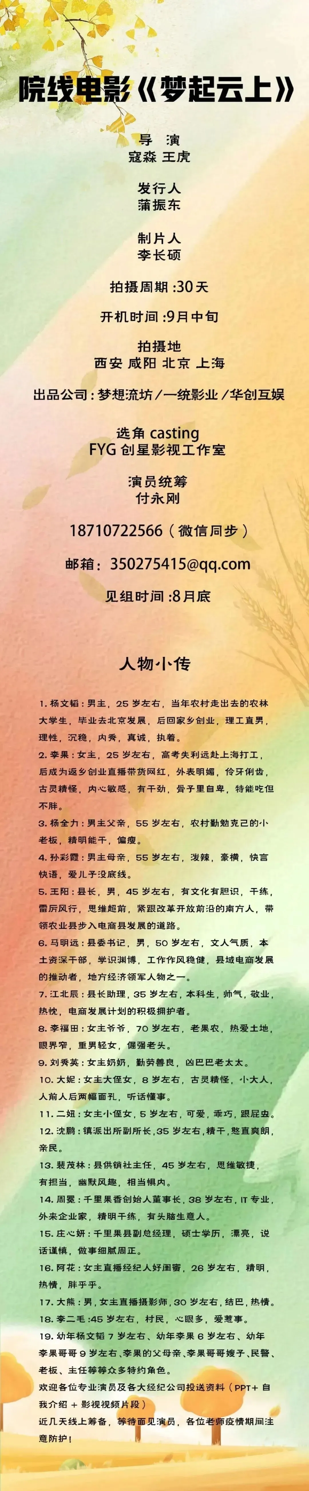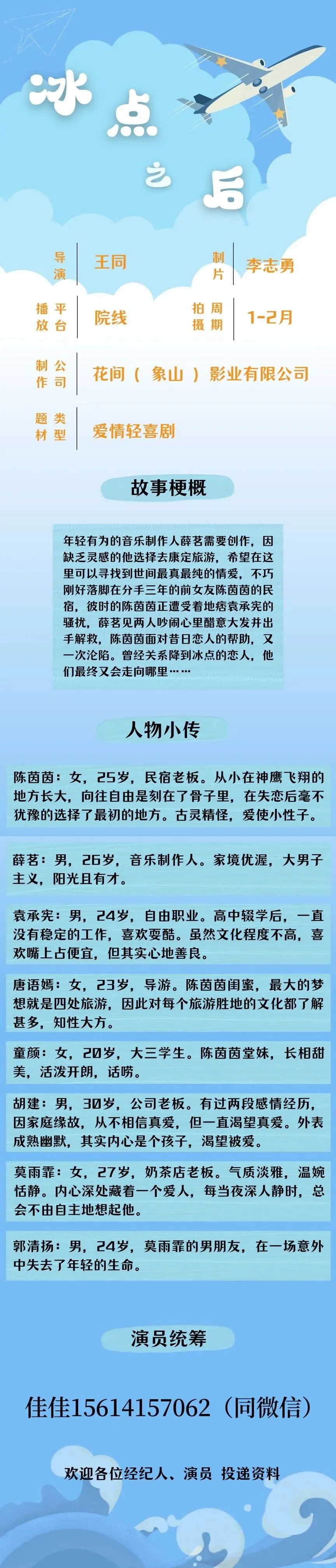 选角负责人:胡煜琪 18203177733 (微信同步)