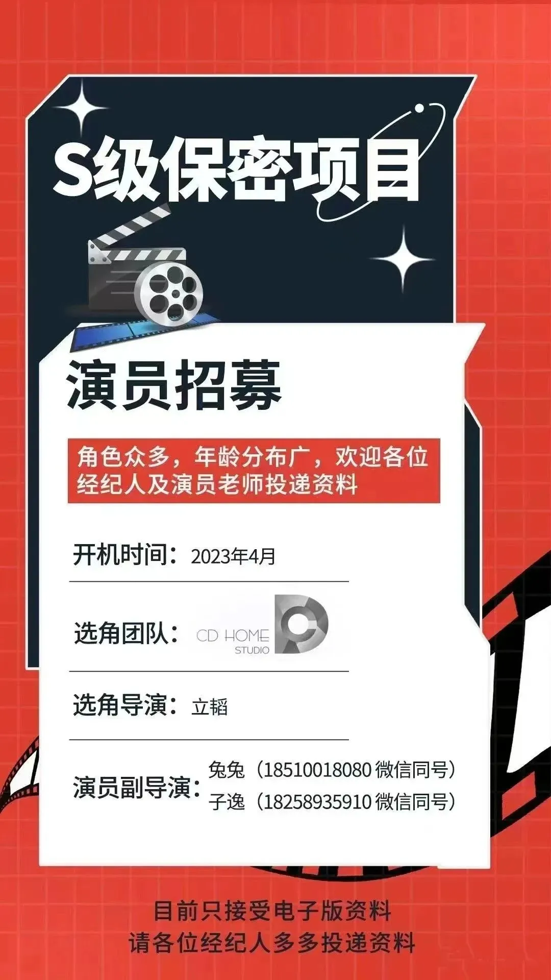 请将附件打包附上演员简历、自我介绍视频及近期作品片段,并备注面试角色,角色众多,欢迎投稿。