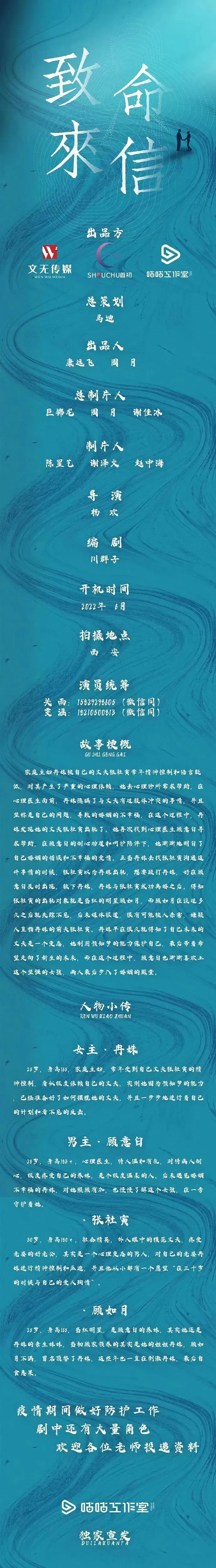 本组演员全部未定,欢迎各大经纪公司各位演员朋友投递资料,防控需要,目前只接受线上投递。