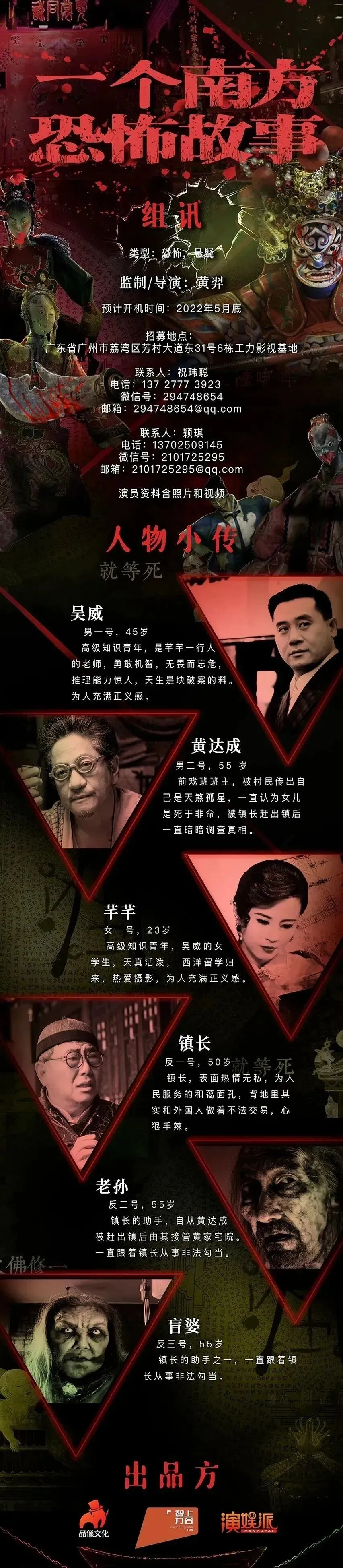 本组演员全部未定,欢迎各大经纪公司各位演员朋友投递资料,防控需要,目前只接受线上投递。