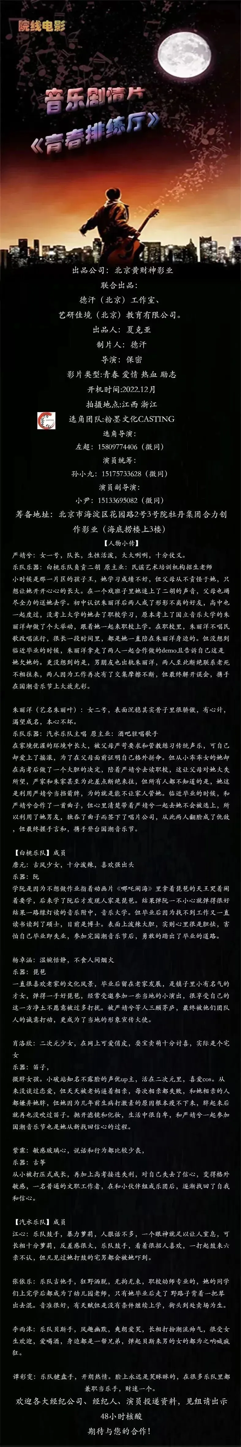 筹备地址:北京市海淀区花园路2号3号院牡丹集团合力创作影业