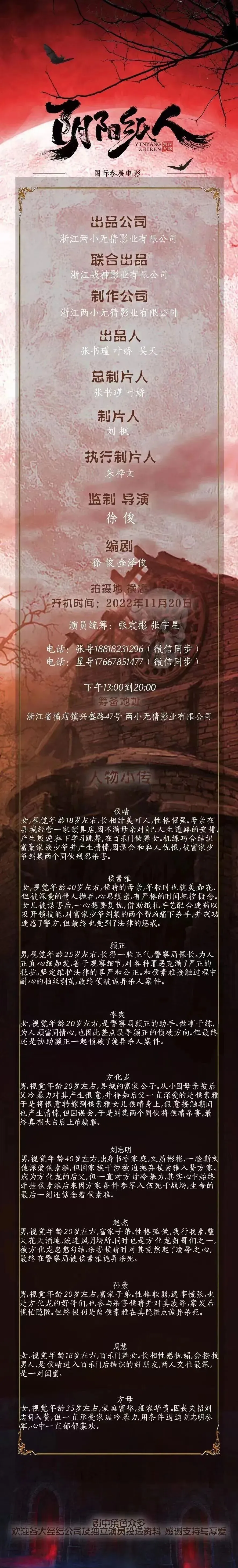 选角导演:张宸彬 18818231296 (微信同步)