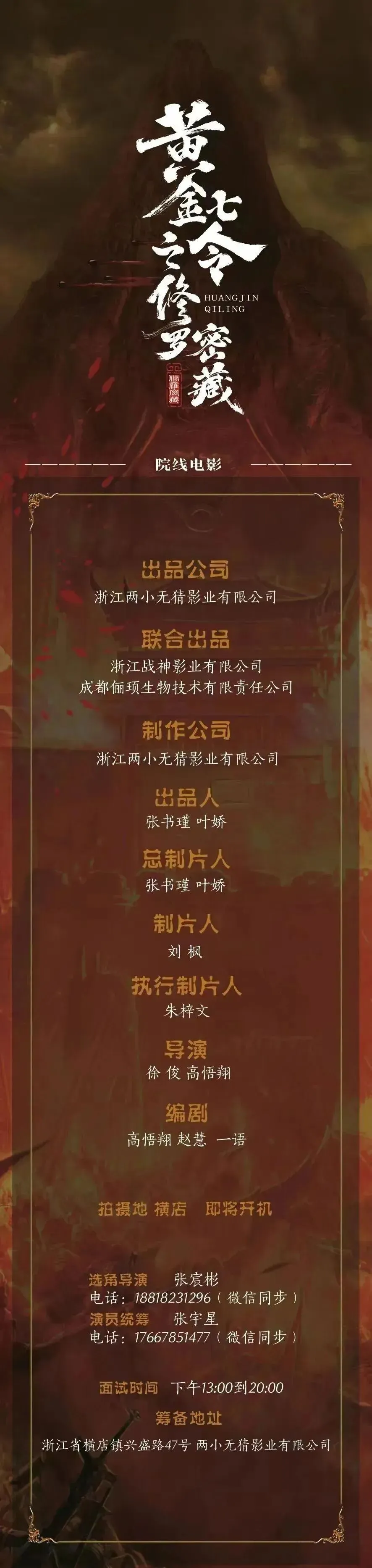 出品公司:四川华彩影业有限公司、北京二八定律影视传媒有限公司