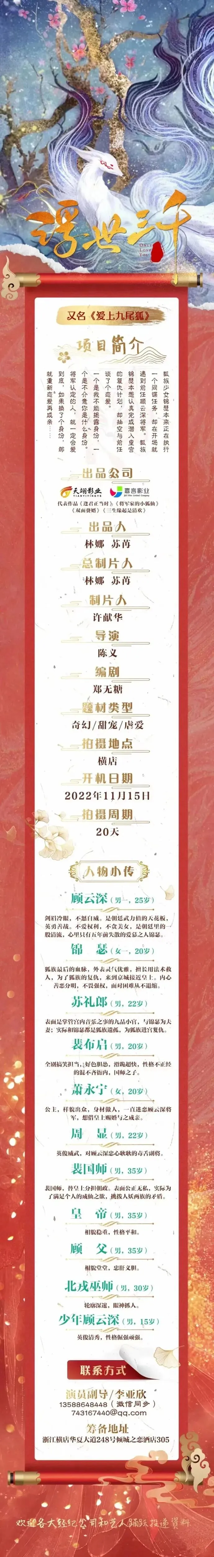 剧中角色众多,欢迎各大经纪公司及独立演员投递资料感谢支持与厚爱。