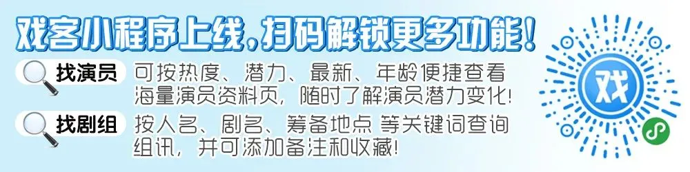 戏客小程序上线啦,点击进入小程序,查看艺人资料页,了解更多详细信息。