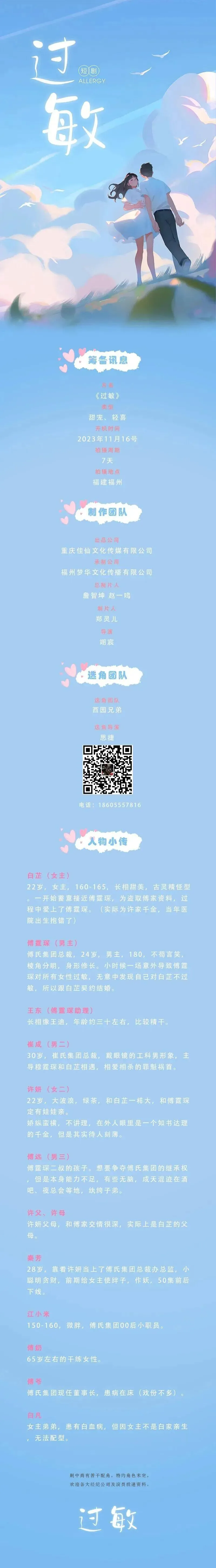 选角联系人:舒舒 18502837596(同微信)