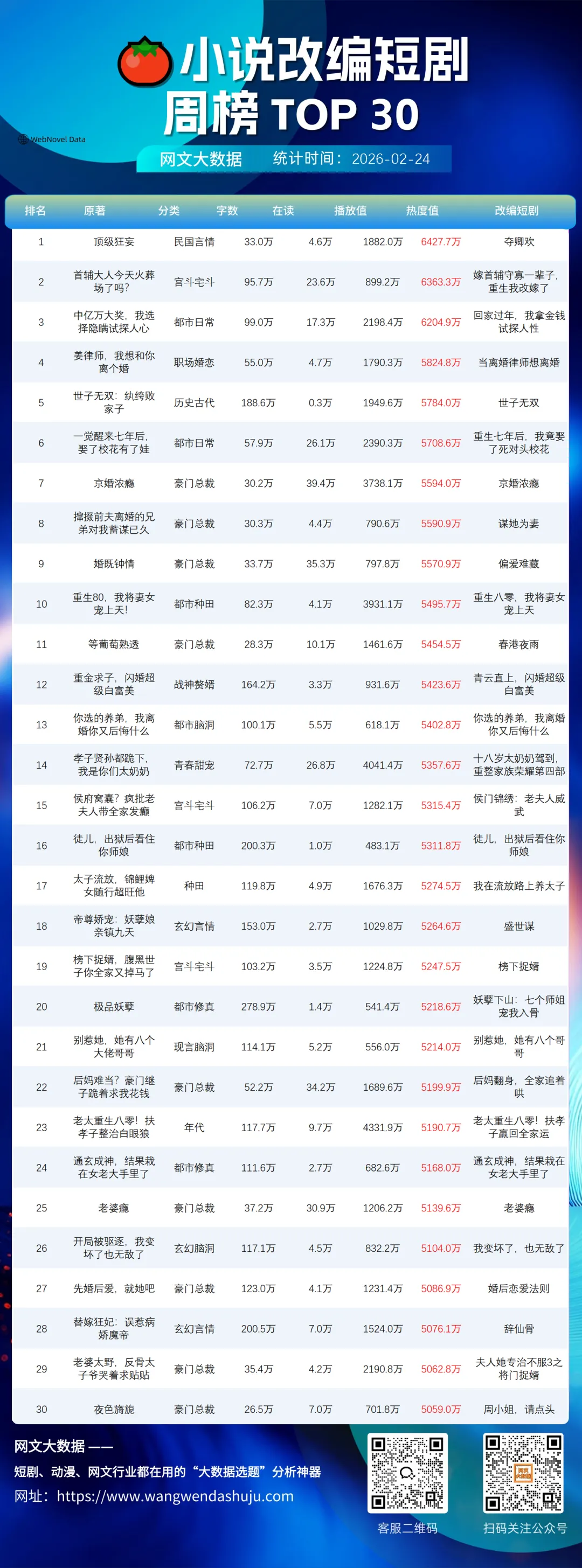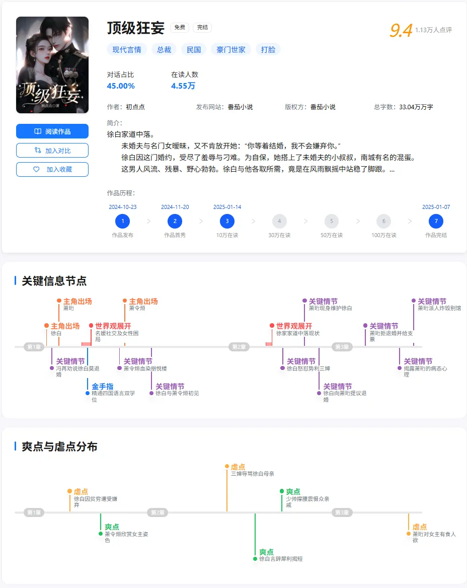 大家好,这里是网文大数据,专注分享网文圈创作风向热点资讯、影视化攻略,致力于借助“网文大数据”AI工具,辅助创作者数据分析、高效起量。