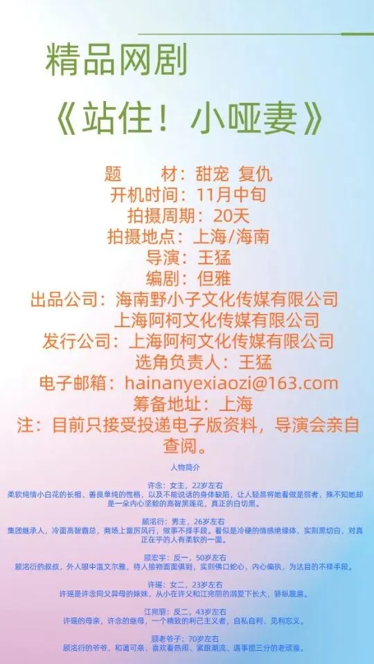选角导演:申非凡 13439368901 (微信同步)