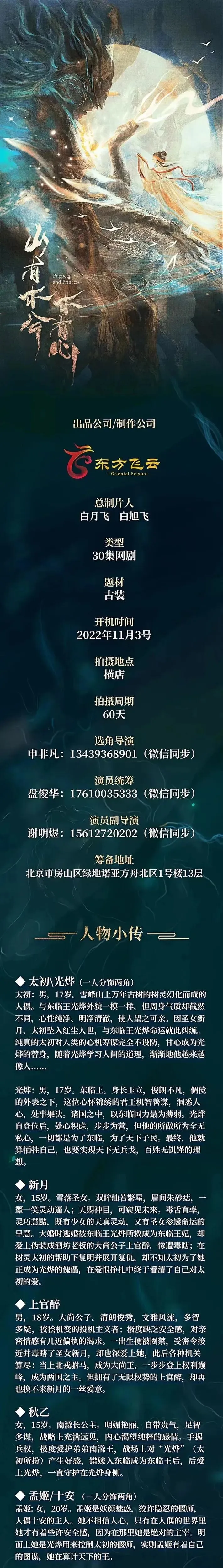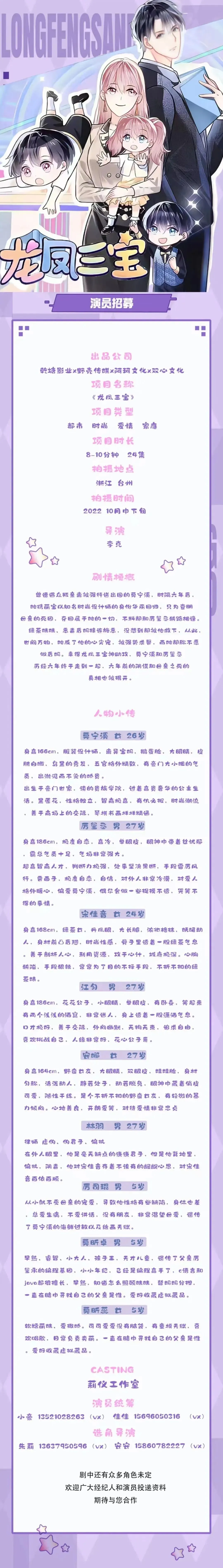 剧中还有众多角色未定,欢迎广大经纪人和演员投递资料,期待与您合作。